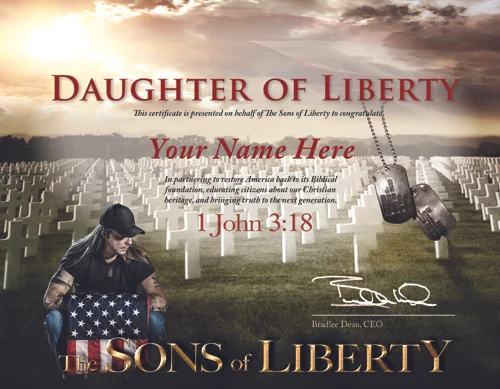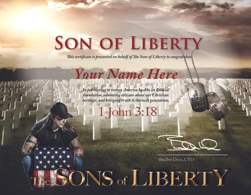 Join our army for Christ by becoming a Son or Daughter of Liberty. Our monthly sponsorship program has proven to be an answer to prayer for many. This program allows Christian-Patriots to sow into a ministry that is constantly doing instead of just sitting in church pews (James 1:22). It’s time to pick up your sword, or take off the uniform!